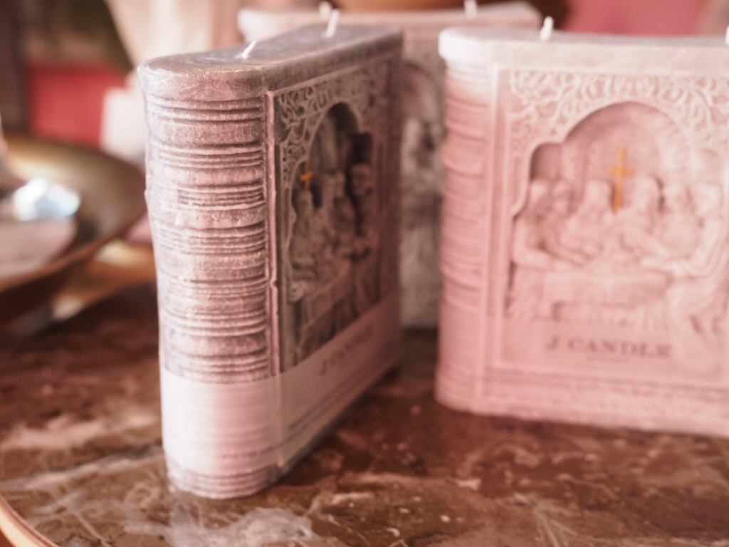 古い書物を模したフォルムに、繊細な装飾のレリーフが美しいです。