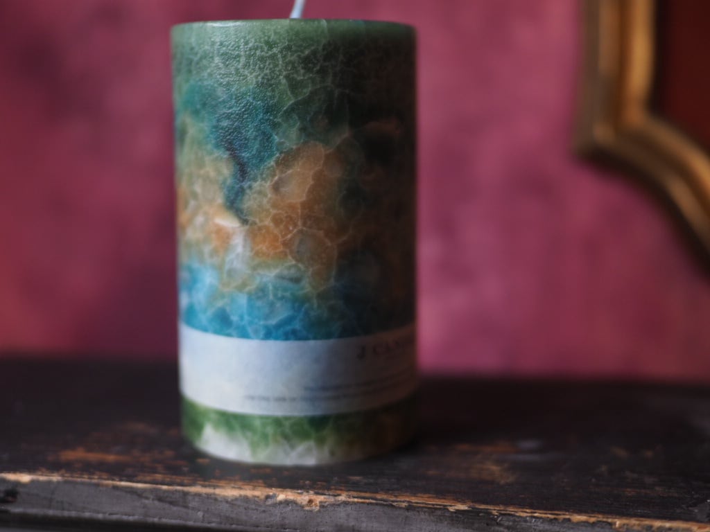 グラデーションを施し、クラックが美しいデザインのキャンドル、Nebula no.1。ほんのりシトラスの香りが広がり、心地よい空間を演出します。様々なカラーを散らして丁寧に制作しているので、見る角度によって異なる表情を楽しむことができます。