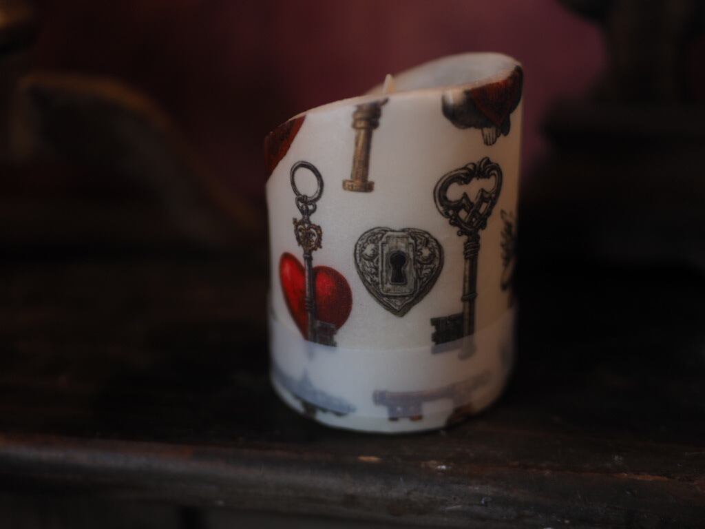 天使や鍵のモチーフが施されており、見る人の心を癒す美しいアート作品です。 灯すことで、柔らかな光とともにデザインの繊細さが引き立ち、心温まる雰囲気を演出します。特別なギフトや、自分への贅沢なひと時を彩るのに最適なアイテムです。インテリアとしても個性豊かな存在感を放ち、空間に華やかさを添えます。
