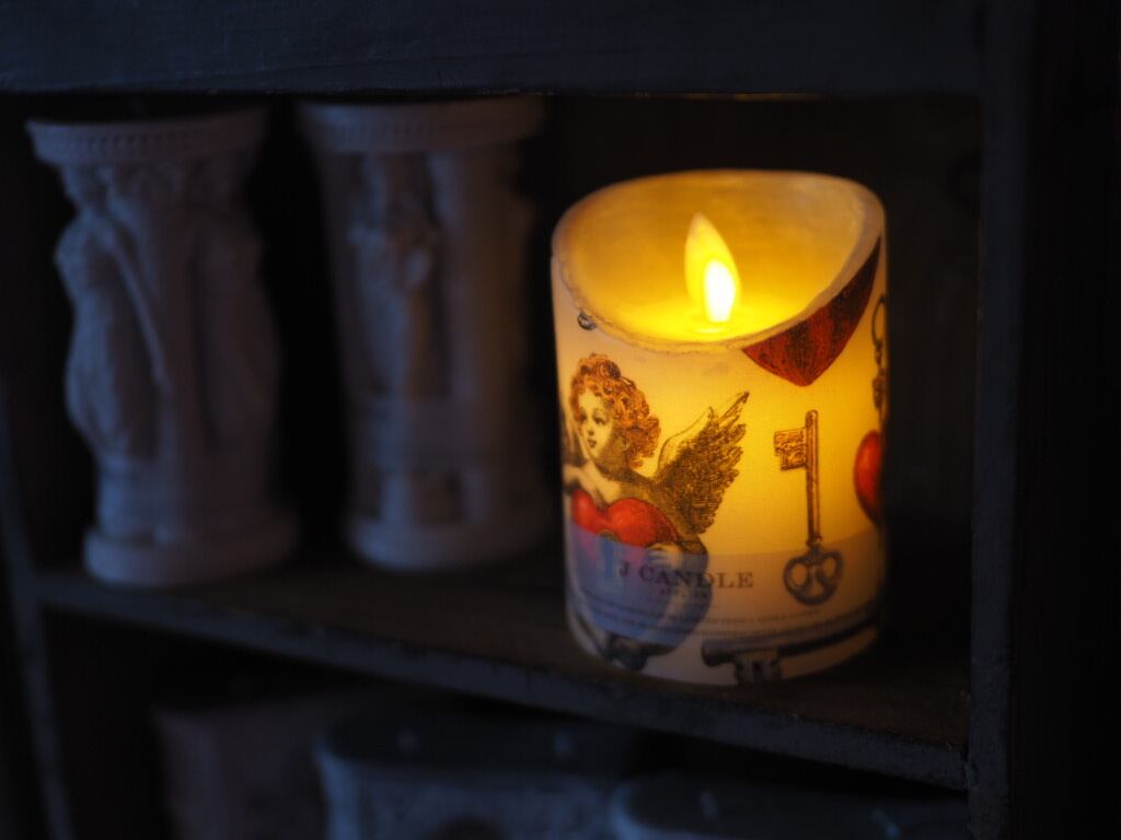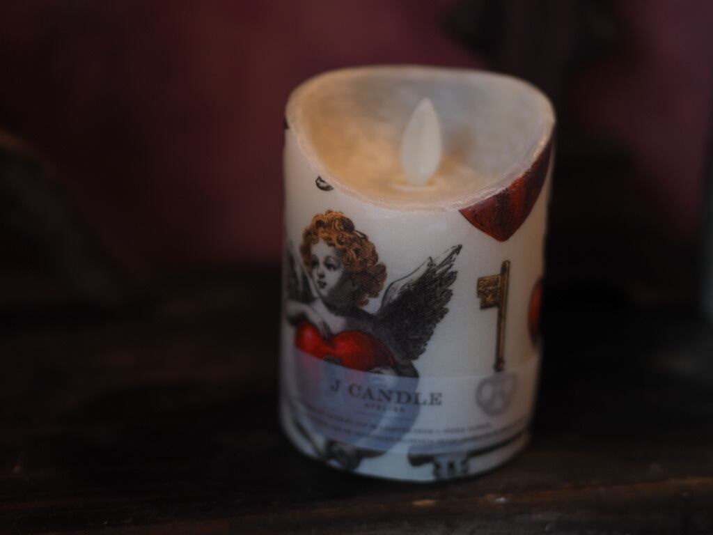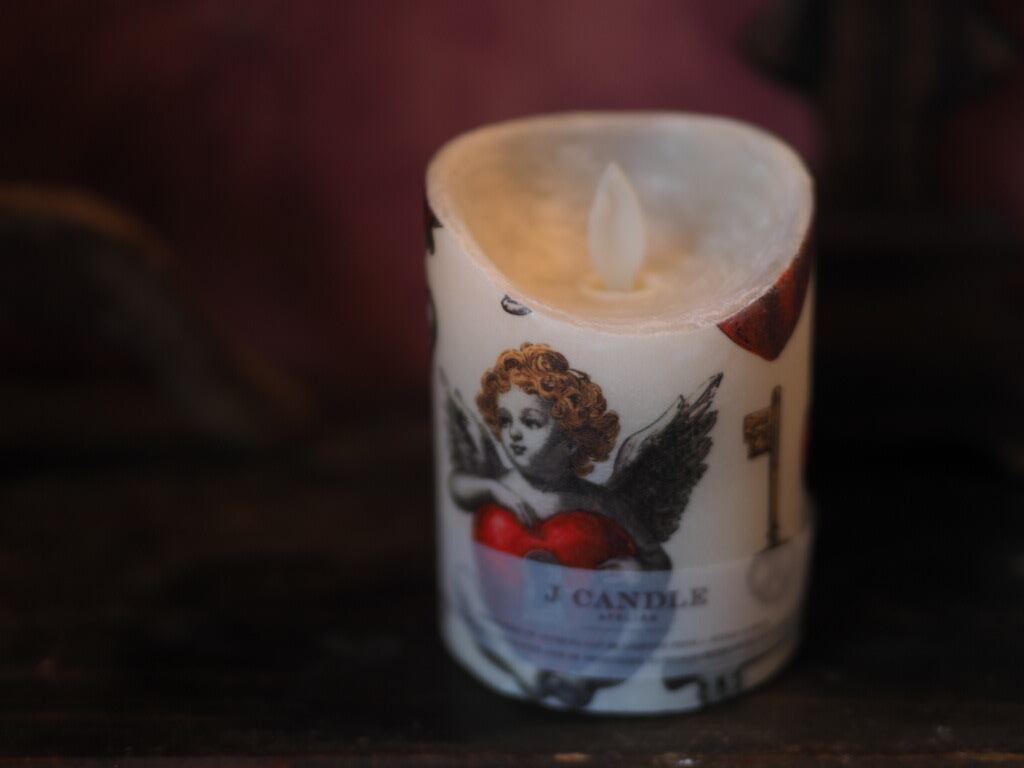 Jcandleがセレクトしたファブリックを蝋で丁寧にコーティングして制作したLEDキャンドル、Heavenly Touch。
